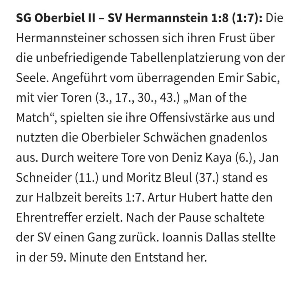 Sieg gegen die SG Oberbiel II